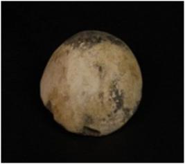 | Description / विवरण | Terracotta handmade fragment of sling ball with smooth surface. Ill fired, well levigated clay being used and grey in colour. |