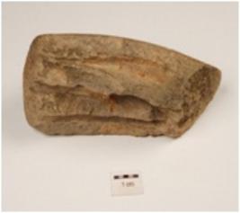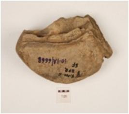 | Description / विवरण | A fragment of hand made terracotta unidentified object, partly broken, rough surface improper edges, treated with wash in grey colour, well baked. Made with well levigated clay, thick in character. |