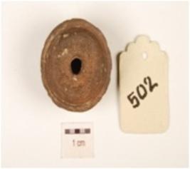 | Description / विवरण | Terracotta handmade fragment of sling ball with smooth surface. Ill fired, gritty clay and grey in colour. |