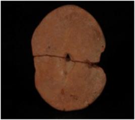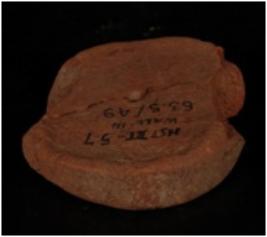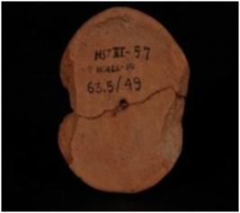 | Description / विवरण | Fragmentary terracotta wheel made of grey ware pot sherd and perforation at the centre. Mended from between. |