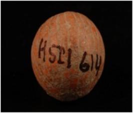 | Description / विवरण | Terracotta sling ball with Incised lines on surface. |