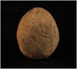 | Description / विवरण | Terracotta handmade nodule, small semi circular in shape with flat, uneven base and surface. Ill fired,well levigated clay and wash treatment in dull red colour. |