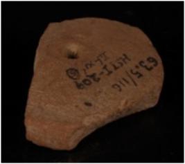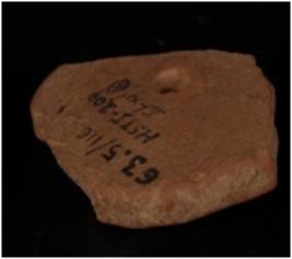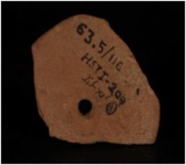 | Description / विवरण | Fragmentary terracotta wheel with a perforation on the middle. |