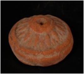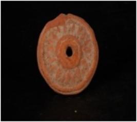 | Description / विवरण | Convex shaped terracotta wheel with spoked design and perforation at the centre. |