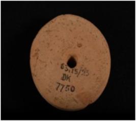 | Description / विवरण | A handmade, well baked, terracotta wheel, circular in shape, double convex having hole in centre, made with well levigated clay and given a wash treatment in buff colour. |