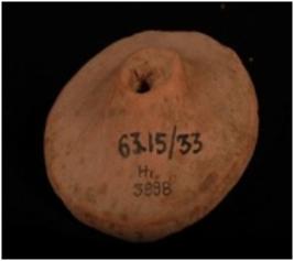 | Description / विवरण | A handmade, well baked, terracotta wheel, circular in shape, double convex having hole in centre, made with well levigated clay and given a wash treatment in buff colour. |
