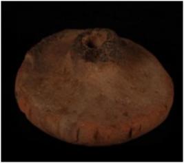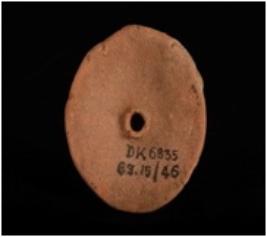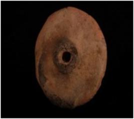 | Description / विवरण | A handmade, well baked, terracotta wheel, circular in shape, double convex having hole in centre, made with well levigated clay and given a wash treatment in buff colour. |