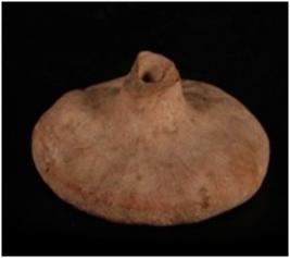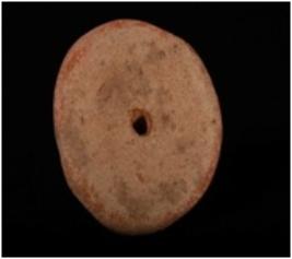 | Description / विवरण | A handmade, well baked, terracotta wheel, circular in shape, double convex having hole in centre, made with well levigated clay and given a wash treatment in buff colour. |