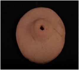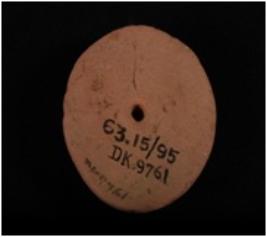| Description / विवरण | A handmade, well baked, terracotta wheel, circular in shape, double convex having hole in centre, made with well levigated clay and given a wash treatment in buff colour. |