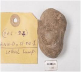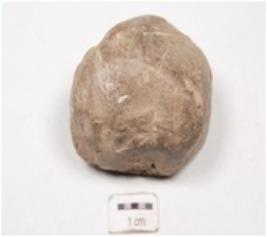 | Description / विवरण | A terracotta incised greyish irregular lump with smooth surface. |