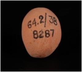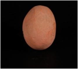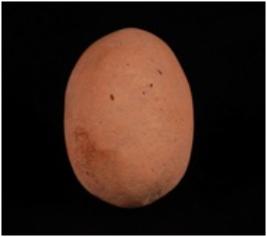 | Description / विवरण | A handmade, well baked, terracotta sling ball, ovel in shape, made with well levigated clay and given a wash treatment in red colour. |
