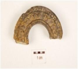 | Description / विवरण | A terracotta handmade unidentified object, floral decoration on surface, treated with slip in grey colour, square cross section and partly broken. |