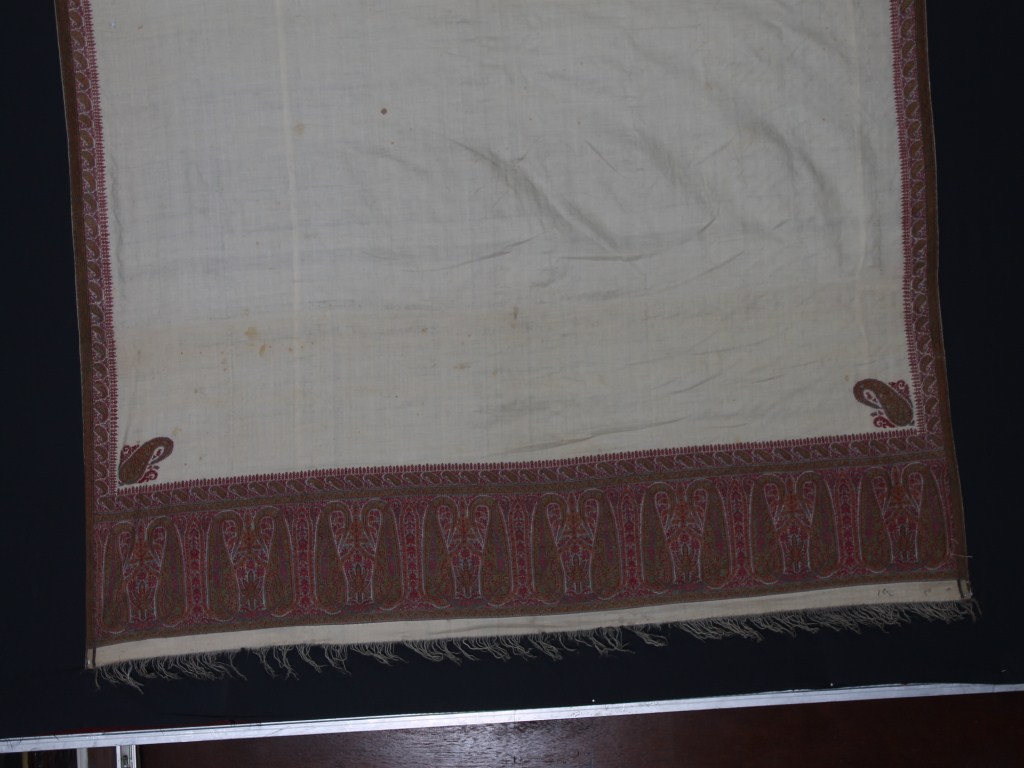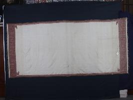 The outmost border is a typical example of the art of the rafoogar, the sewer of fine seams. The ground color is white, but red and brown the more commonly used.