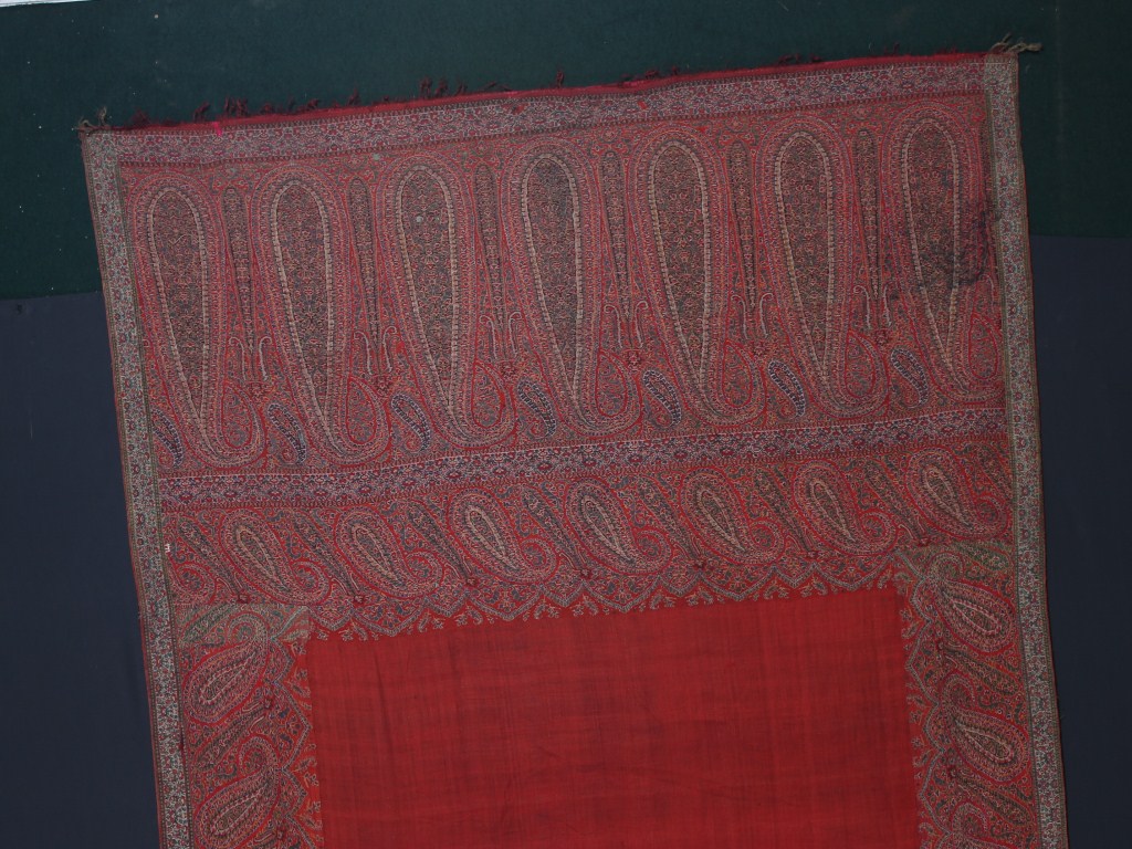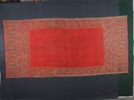 The famous kani shawl is an integral part of the history of Kashmir. The ground color is red, but purple the more commonly used in border design. A special feature of these embroiderey shawl is the include of border design on all four sides.