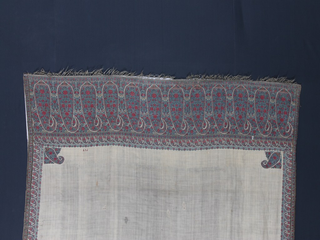 The famous Kani shawl is an integral part of the history of Kashmir. The ground color may be gray, but blue the more commonly used with colorful patterns on both sides.