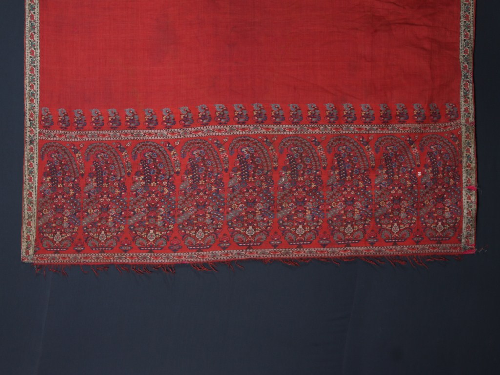 The famous Kani shawl is an integral part of the history of Kashmir. The ground color is red, but blue the more commonly used with colorful patterns on both sides.