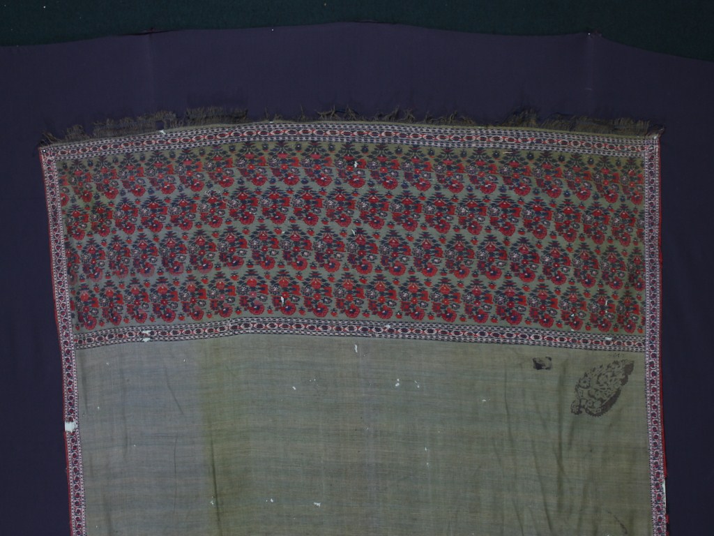 The famous Kani shawl is an integral part of the history of Kashmir. The ground color may be light green, but red the more commonly used with colorful border on the both sides.