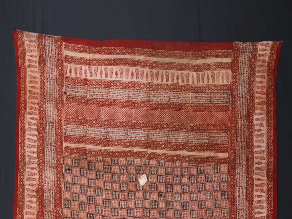 The colorful cloth is an integral part of the history of Kashmir. The ground colour may be grey but red the more commonly used with inscription all over the fabric.