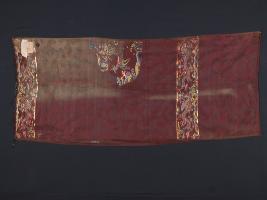 The embroidered cloth is an integral part of the history of Kashmir. The ground color may be brown but gray the more commonly used with colorful patterns all over the fabric.