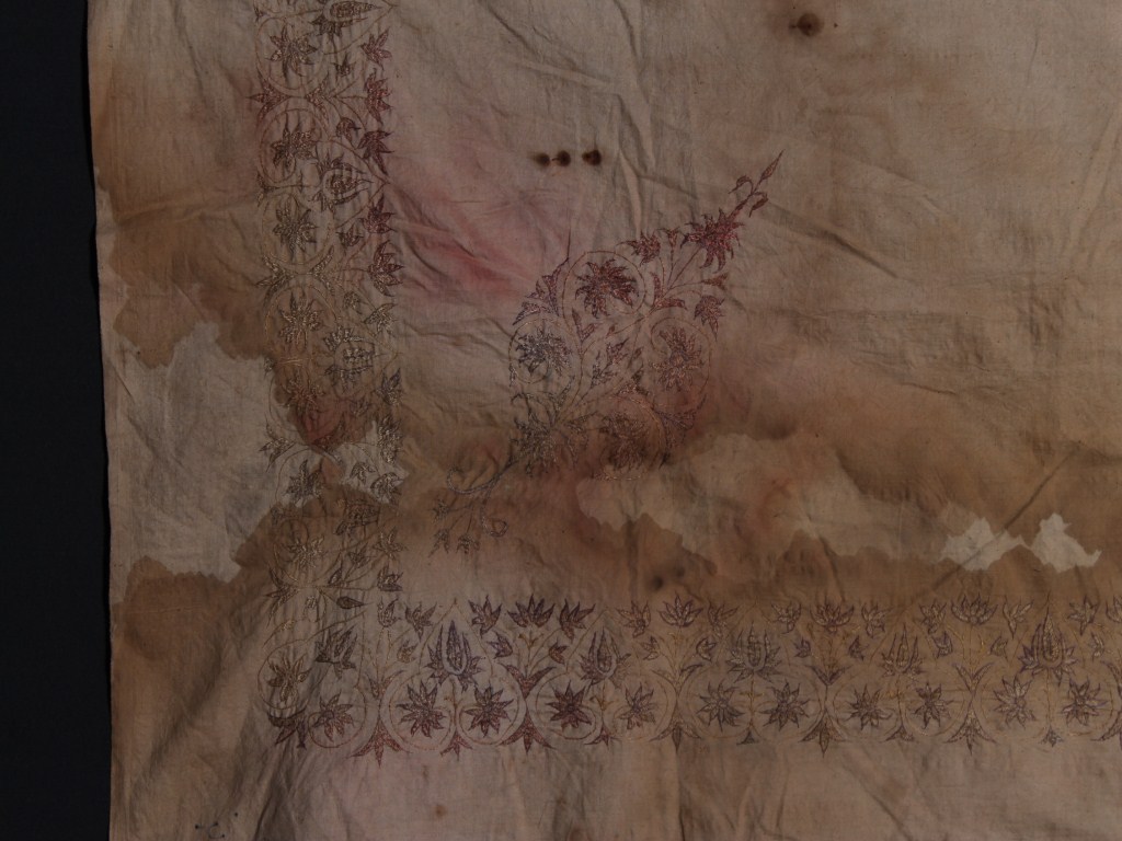 The embroidered and designed cloth is an integral part of the history of Kashmir. The ground colour may be white, but brown the more commonly used in border design.