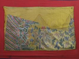 The embroidered and colourful cloth is an integral part of the history of Kashmir. The entire surface of the Goshan cloth is smooth with colourful patterns all over the fabric. This is an interesting example of the Chinese influence on the Kashmiri art with embroideries skill and ability.