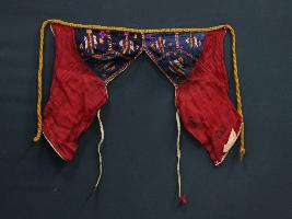 | Description / विवरण | The embroidered and colourful cloth is an integral part of the history of Kashmir. The arms part of this choli is red and breast part is blue with a long yellow dori. The entire surface is smooth and silky. |