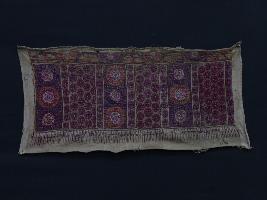 | Description / विवरण | The embroidered and colourful cloth is an integral part of the history of Kashmir. The entire surface of the fabric is smooth with colourful patterns all over the fabric. The ground colour may be white, but purple the more commonly used in decoration. |