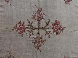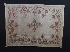 | Description / विवरण | The embroidered and colourful cloth is an integral part of the history of Kashmir. The entire surface of the bed sheet is smooth with colourful floral patterns all over the fabric. The ground colour may be white, but red the more commonly used in decoration. |
