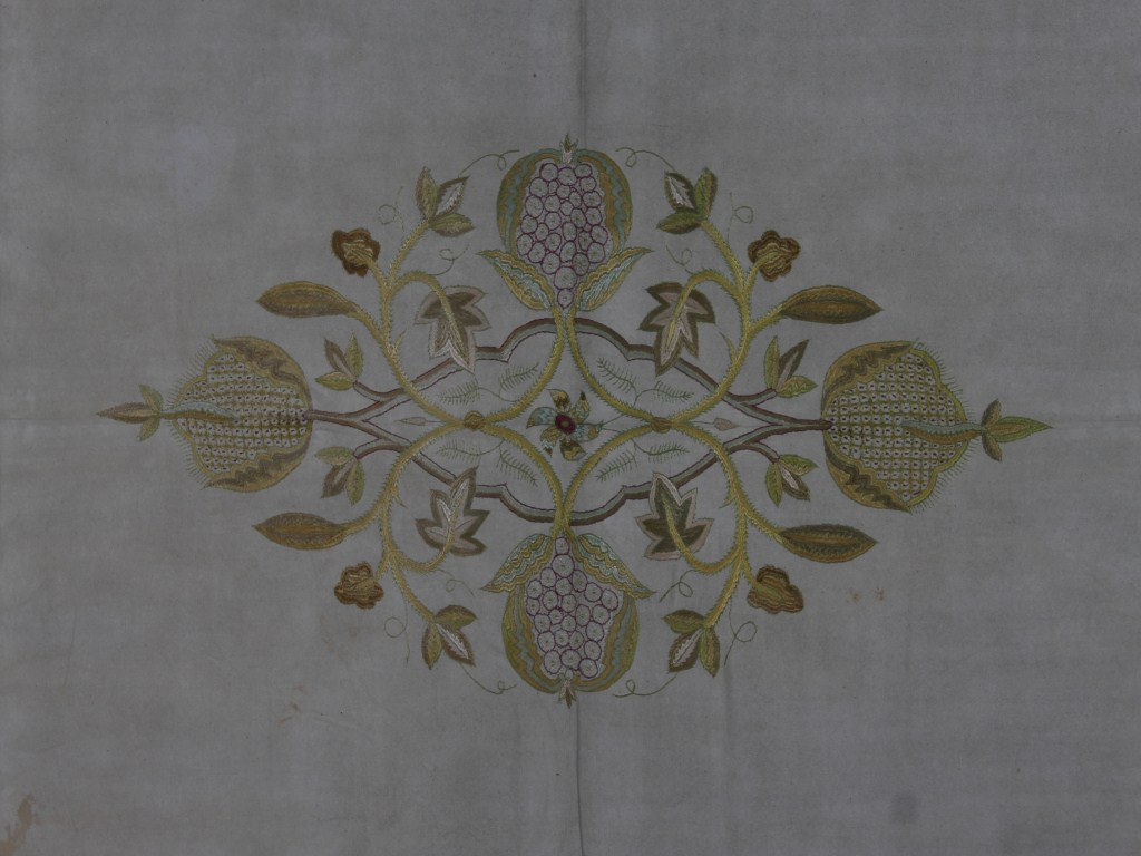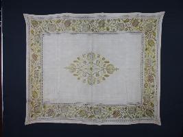 The embroidered and colorful cloth is an integral part of the history of Kashmir. The entire surface of the fabric is smooth with colourful floral patterns all over the fabric. The ground colour may be white, but green the more commonly used in decoration.