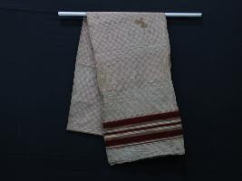| Description / विवरण | The embroidered and design cloth is an integral part of the history of Kashmir. The entire surface of the white lungi is smooth with red lining patterns on the both sides like as border. |