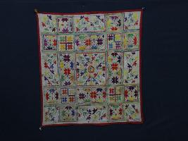| Description / विवरण | The embroidered and colourful cloth is an integral part of the history of Kashmir. The entire surface of the Rumal is smooth with colourful floral patterns all over the fabric. The ground colour may be white, but red the more commonly used in decoration. |