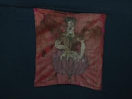| Description / विवरण | The embroidered and painted cloth is an integral part of the history of Kashmir. The entire surface of the fabric is smooth and three-eyed Shiva shown seated pose on the lotus with a snake. The ground colour may be red, but white the more commonly used in this seen. |