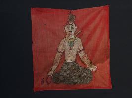 | Description / विवरण | The embroidered and painted cloth is an integral part of the history of Kashmir. The entire surface of the fabric is smooth and three-eyes Shiva is shown seated pose with a snake on the neck. Shiva wears a decorated gray drapery with Rudaraksha mala and round kundala. The ground colour may be red, but white the more commonly used in body of Shiva. |