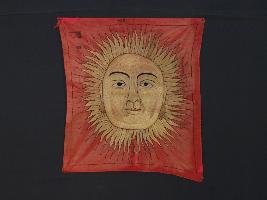 | Description / विवरण | The embroidered and colourful cloth is an integral part of the history of Kashmir. The entire surface of the fabric is smooth and depicts a Sun in the large centre. The ground colour may be red, but light yellow the more commonly used in the Sun. |