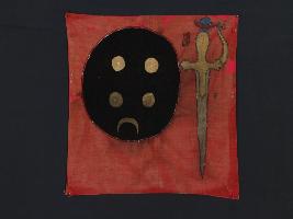 | Description / विवरण | The embroidered and colourful cloth is an integral part of the history of Kashmir. The entire surface of the Rumal is smooth and depicts a sword and shield The ground colour may be red, but yellow the more commonly used. |