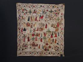 | Description / विवरण | The embroidered and colourful cloth is an integral part of the history of Kashmir. The entire surface of the Rumal is smooth with colourful floral patterns all over the fabric. Probably this episode indicates the folk seen of India. The ground colour of this cloth is white with some bad marks. |