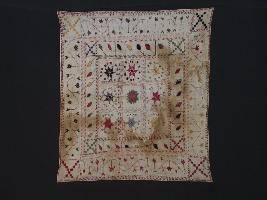 | Description / विवरण | The embroidered and colourful cloth is an integral part of the history of Kashmir. The entire surface of the Rumal is smooth with colourful geometrical floral patterns all over the fabric. The colour of this cloth is white with many stains. |