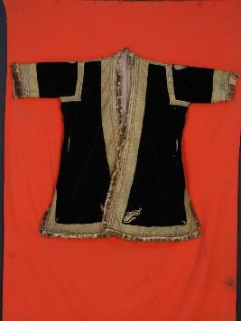 | Description / विवरण | The embroidered and designed cloth is an integral part of the history of Kashmir. The entire surface of the black coloured Choga is smooth with border patterns on the main sides. |
