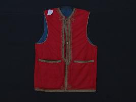 | Description / विवरण | The embroidered and designed cloth is an integral part of the history of Kashmir. The entire surface of the red coloured coat is smooth with grey border patterns on the neck, front, pocket etc. |