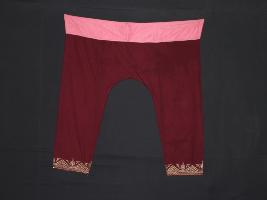 | Description / विवरण | The embroidered and designed cloth is an integral part of the history of Kashmir. The entire surface of the red coloured shalwar is smooth with pink designs on the upper border. |