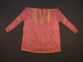 | Description / विवरण | The embroidered and designed cloth is an integral part of the history of Kashmir. The entire surface of the zari worked pharan is smooth and shown with designed pattern and embroidered decoration. |