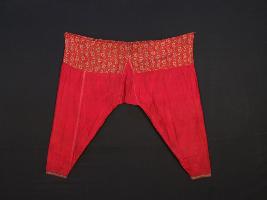 | Description / विवरण | The embroidered and designed cloth is an integral part of the history of Kashmir. The entire surface of the pink coloured shalwar is smooth and shown with designed pattern and embroidered decoration. |