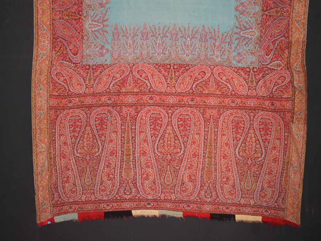 The embroidered and designed cloth is an integral part of the history of Kashmir. The entire surface of the shawl is smooth with designed patterns all over the fabric. The ground colour may be sky blue but red the more commonly used in decoration.