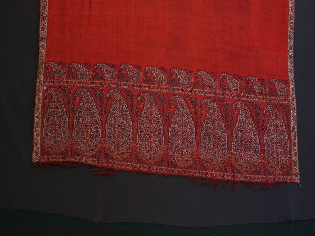 The embroidered and designed cloth is an integral part of the history of Kashmir. The entire surface of the shawl is smooth with designed patterns all over the fabric. The ground colour may be red, but blue the more commonly used in decoration.