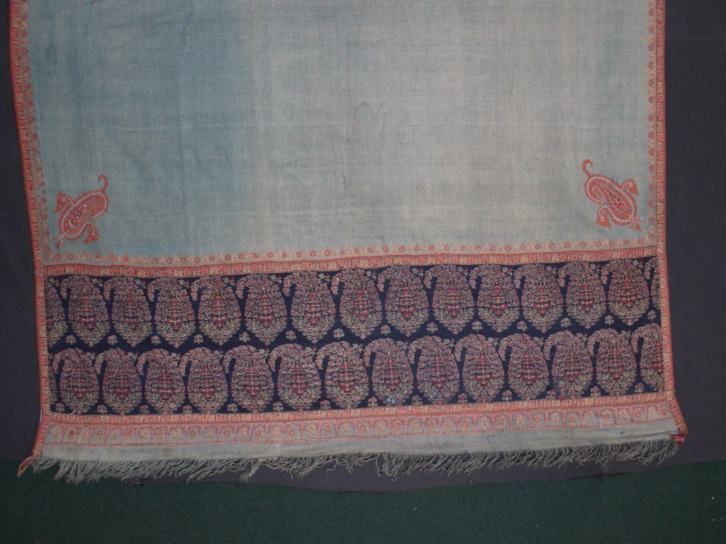 The embroidered and designed cloth is an integral part of the history of Kashmir. The entire surface of the shawl is smooth with designed patterns all over the fabric. The ground colour may be light blue but brown the more commonly used in decoration.
