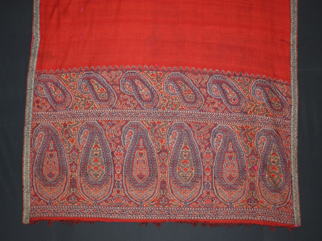 Kashmiri shawl is very famous all around the world. This shawl is made of pashmina. Main colour is red but both the ends are beautifully decorated with floral designing of many colours.