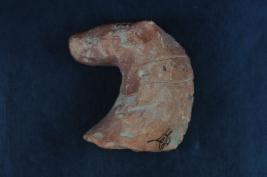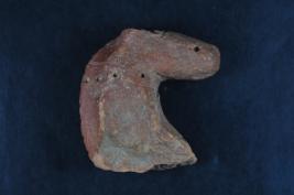| Description / विवरण | It s a horse head made of terracotta. It is well fired. Its colour is ochre and red. A hole on its face and back portion is lost. Many pinned design on it and eyes are in pinned shape. Deposition of dust and dirt. Surface is rough and flaking on it. |
