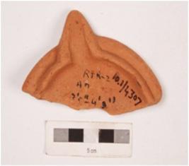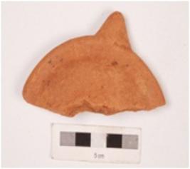 | Description / विवरण | Fragment of earthern lamp with smooth surface, rim with intact wick visible along the periphery, dull red ware fragment. |