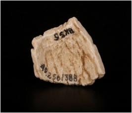| Description / विवरण | Fragment of a steatite pot with rough surface having deep cracks and globular profile. |