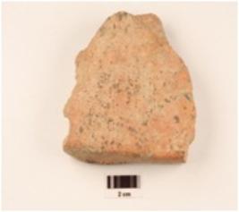 | Description / विवरण | A terracotta skin rubber, fine fabric, well baked, broken from three ends and blackened surface. |